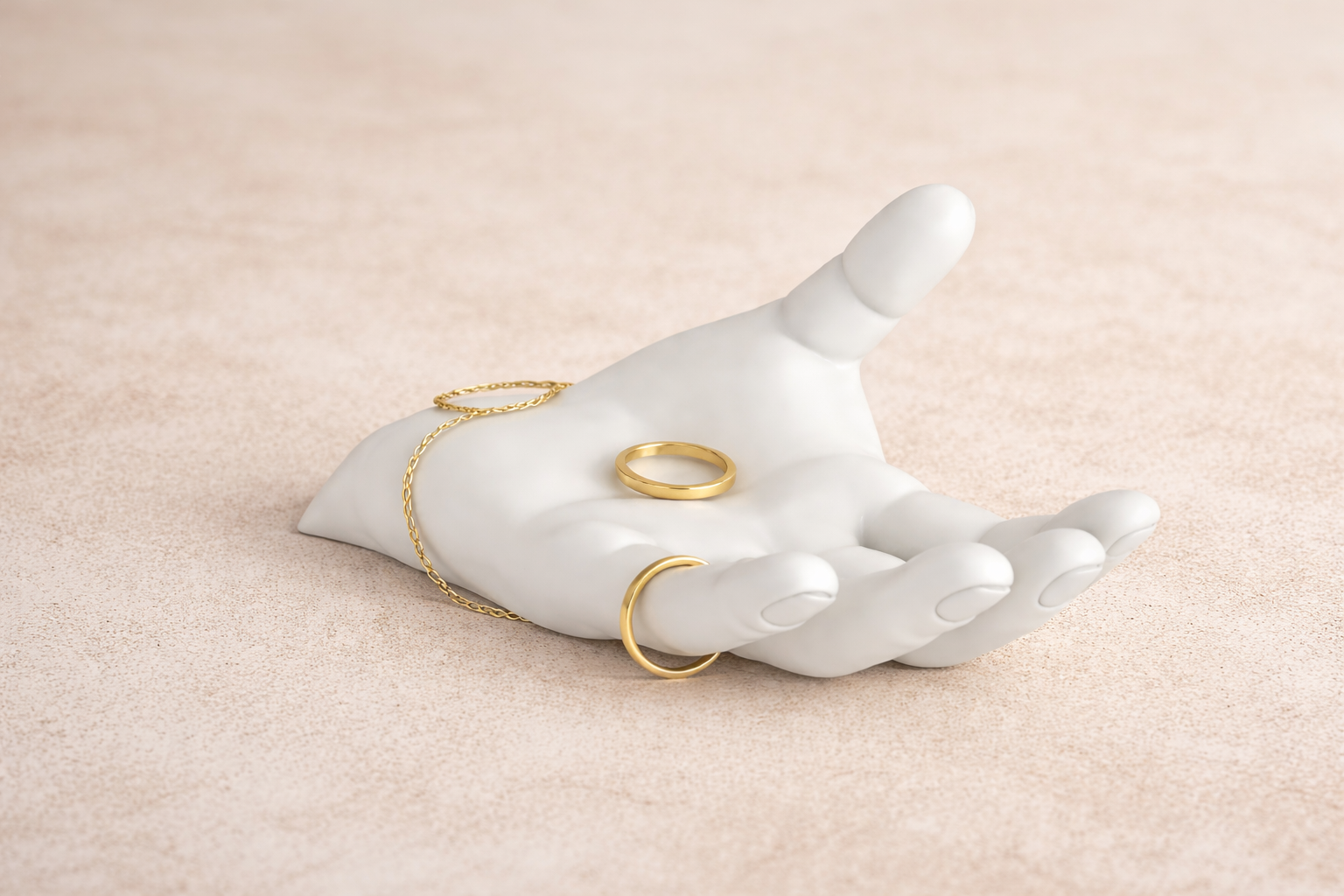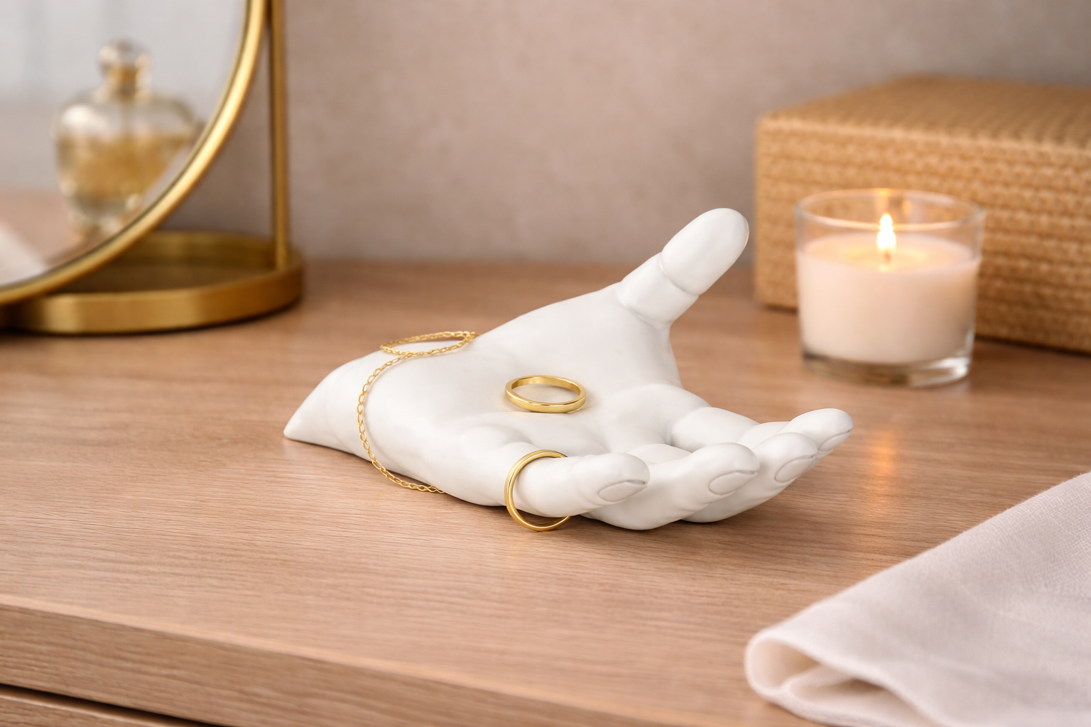 A Modern Sculpted hand designed to catch rings, braclets, and everyday jewelry. Clean, minimal, and made to elevate your dresser or night stand
